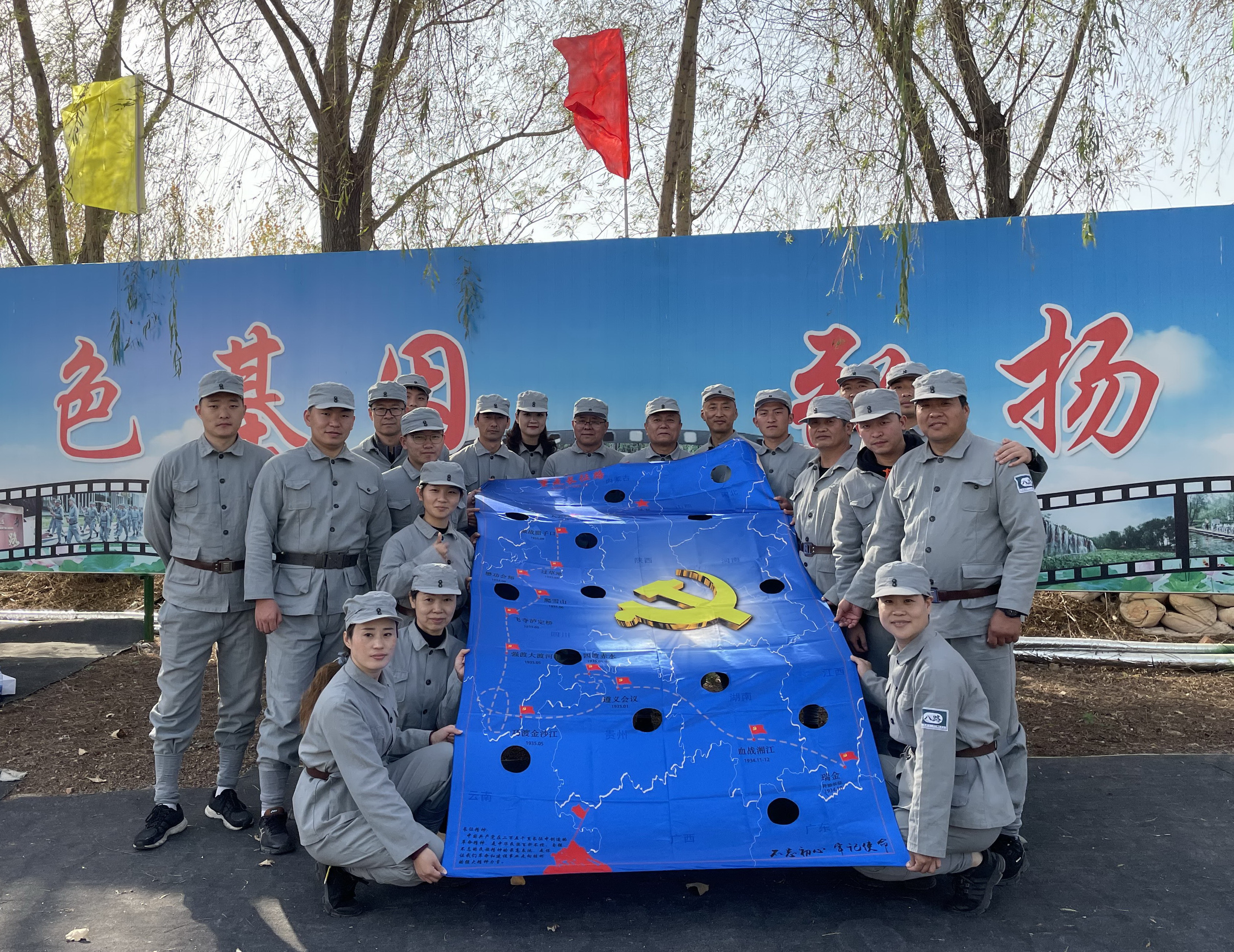 下午,参训学员分组体验了支援前线、重走长征路等红色主题团建拓展活动,方式新颖、声临其境,亲身感受烽火岁月、悲壮场景、激越豪情,从而让红色基因融入血脉,激发出内心强烈的爱国热情。同时,又培养了大家的团队配合协作能力,加强了团队精神,提升了团队士气,激发了饱满的激情。
