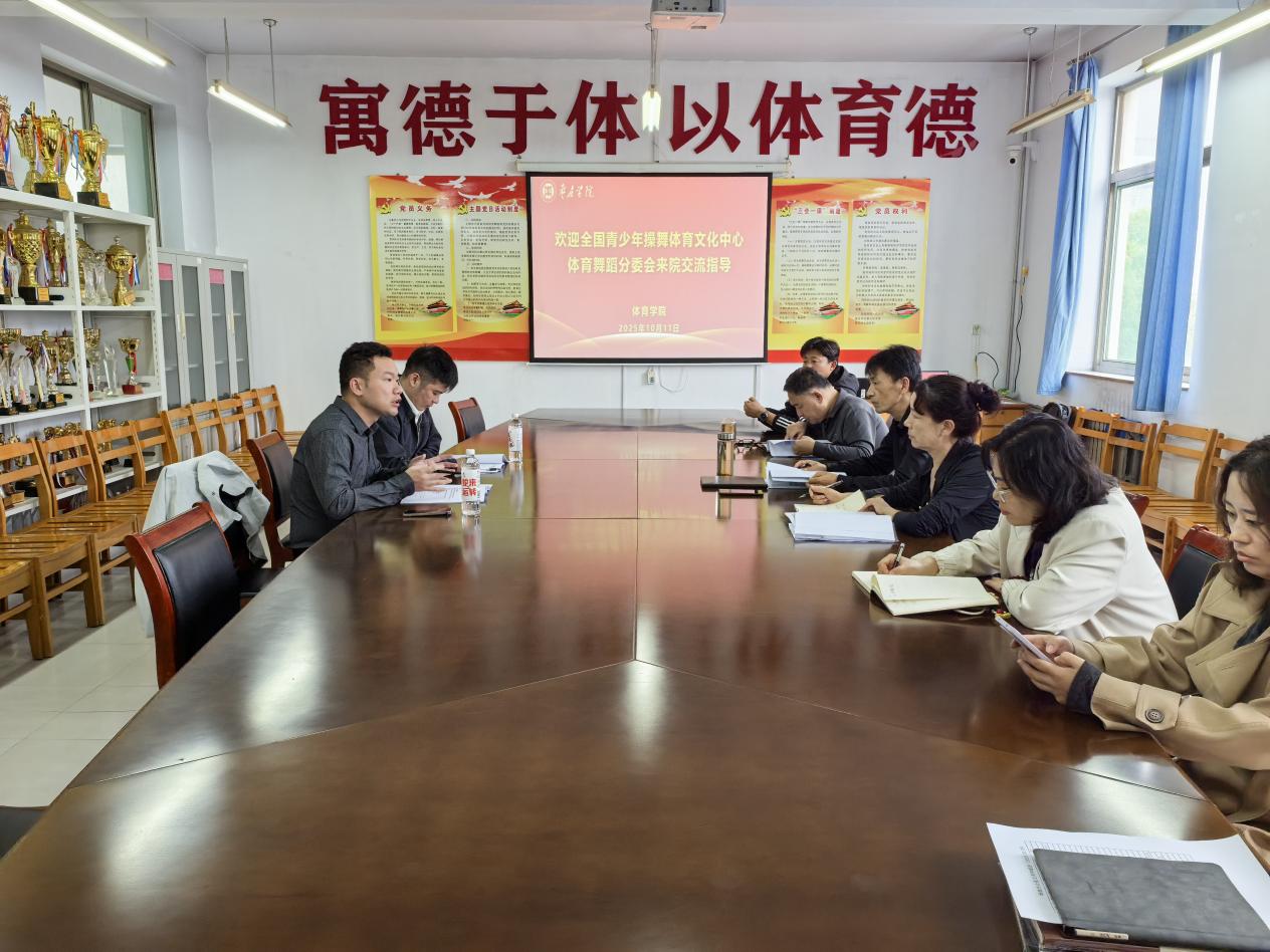 10月11日下午,全国青少年操舞体育文化中心体育舞蹈分委会、山东省演出行业协会国标舞委员会秘书长邢政、副主任欧懿来2007so太阳集团座谈交流。学院党政领导及体育艺术教研室相关教师参加了座谈。