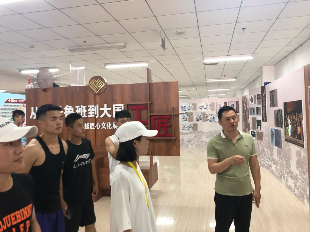 步入展厅,扑面而来的是一阵荫凉,门口几张年代久远的木质桌椅弥漫着古色古香。继续前进,我们来到了展览的第一个部分。从远古到夏商周再到春秋战国,从陶器到青铜器再到铁器,伴随着孙书记的的细致讲解,中华先贤的智慧一次次令我们惊叹。展览的第二个部分名为匠心班墨篇,在中国手工业发展过程中,有两位杰出人物走上历史舞台,他们赫然卓立,名留千古。班墨双圣,他们凝练了匠心文化的精髓,为后世匠人开拓了广阔的天空。第三部分匠心天下篇。百工范型,班墨为尊,中华大地无数匠人继往开来,拓展创新。中国文化在各个方面都展示了无穷的魅力。第四部分名为大国工匠篇。大国工匠紧握时代脉搏,以劳动托起中国梦。工匠精神,礼赞中国劳动者的创造,很好地诠释了中国优秀文化传统在现代工业文明的传承和发展。