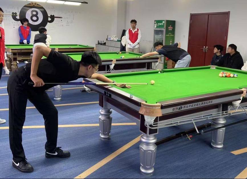 比赛场地布置的专业而规范,比赛现场选手们全身心投入、沉着应战,俯身、瞄准、击球,动作一气呵成,台球在桌面上滚动、碰撞,发出清脆的声响,仿佛在演奏一首激昂的青春乐章,场边观众也被这紧张刺激的氛围所感染。经过激烈的角逐,最终种智博、李志超、张连山获得本次比赛的前三名。