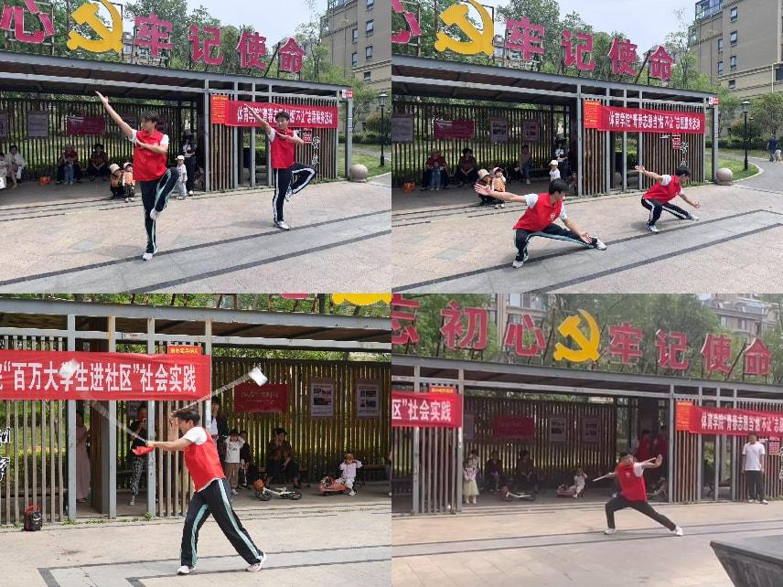 活动现场,志愿者们充分发挥体育专业优势,为社区儿童与老年人量身打造特色文体服务。面向少年儿童,活力四射的拉丁舞与动感街舞轮番上演,志愿者们以肢体语言传递艺术魅力,孩子们跟随节奏拍手欢呼,现场还增设互动教学环节,手把手教授基础舞步,激发儿童运动兴趣。针对老年群体,传统武术刚柔并济的表演赢得阵阵掌声。表演结束后,志愿者们带领老人练习五步拳,讲解科学健身方法,帮助提升健康意识。活动中,社区居民与大学生志愿者围坐交流,孩童的欢笑、老人的称赞与志愿者的热情交织成和谐画卷。