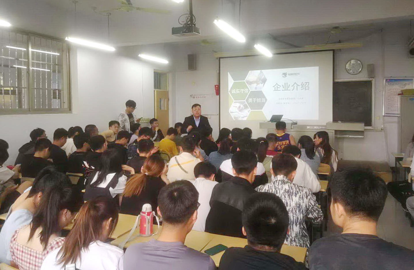 邵经理就此次招聘岗位所需人员的条件、要求及待遇等作了说明,宣讲过程中,他还就就业创业相关政策、简历制作、面试方法等向同学们面授机宜,多次强调“选择”对于学生们的重要性,希望同学们都能找到目标方向,明确未来的职业发展规划并为之而努力奋斗。