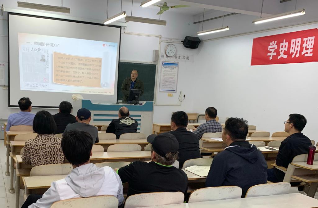 为推动我院专业教师党史学习教育入脑、入心、见行,切实做到“学史明理、学史增信、学史崇德、学史力行”,5月12日下午,我院邀请马克思主义学院教师谢狂飞博士为专业教师讲授党史课。