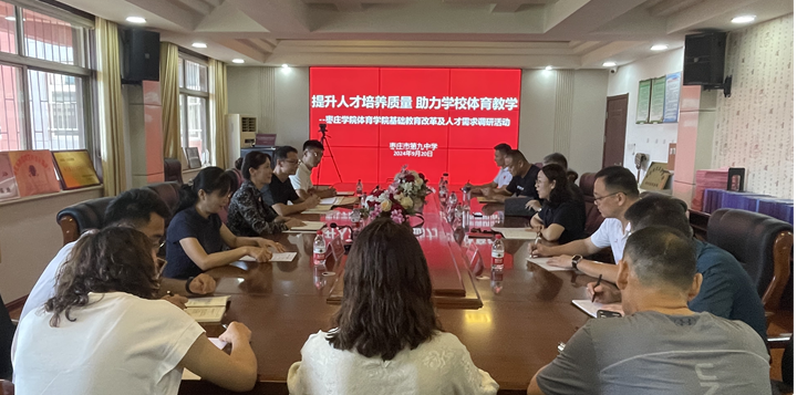 为推动高校体育人才培养和中学体育改革,进一步了解基础教育改革和体育人才需求状况,促使协同育人互融共进,9月20日,2007so太阳集团学科教研基地在枣庄九中、实验中学龙子心校区进行调研并分别举行体育学科教研基地揭牌仪式,2007so太阳集团副院长李丽、韩建阳、市中区教体局教研中心副主任朱亚东、体卫艺股田思响、枣庄九中校长李婷、实验中学党总支副书记、龙子心校区校长王鹏及各校其他相关领导、体育骨干教师参加了本次活动。
