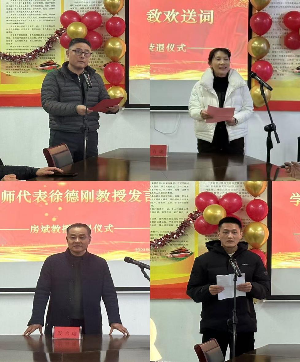 教师代表徐德刚教授回顾了房斌教授以教育事业为重,倾全部心血教书育人,爱岗敬业,默默耕耘,无私奉献,表达了对房教授的不舍、祝福与感恩之情。学生代表李想、陈亦菲庄重而又满怀不舍地表达了对房教授感恩和留恋之情。