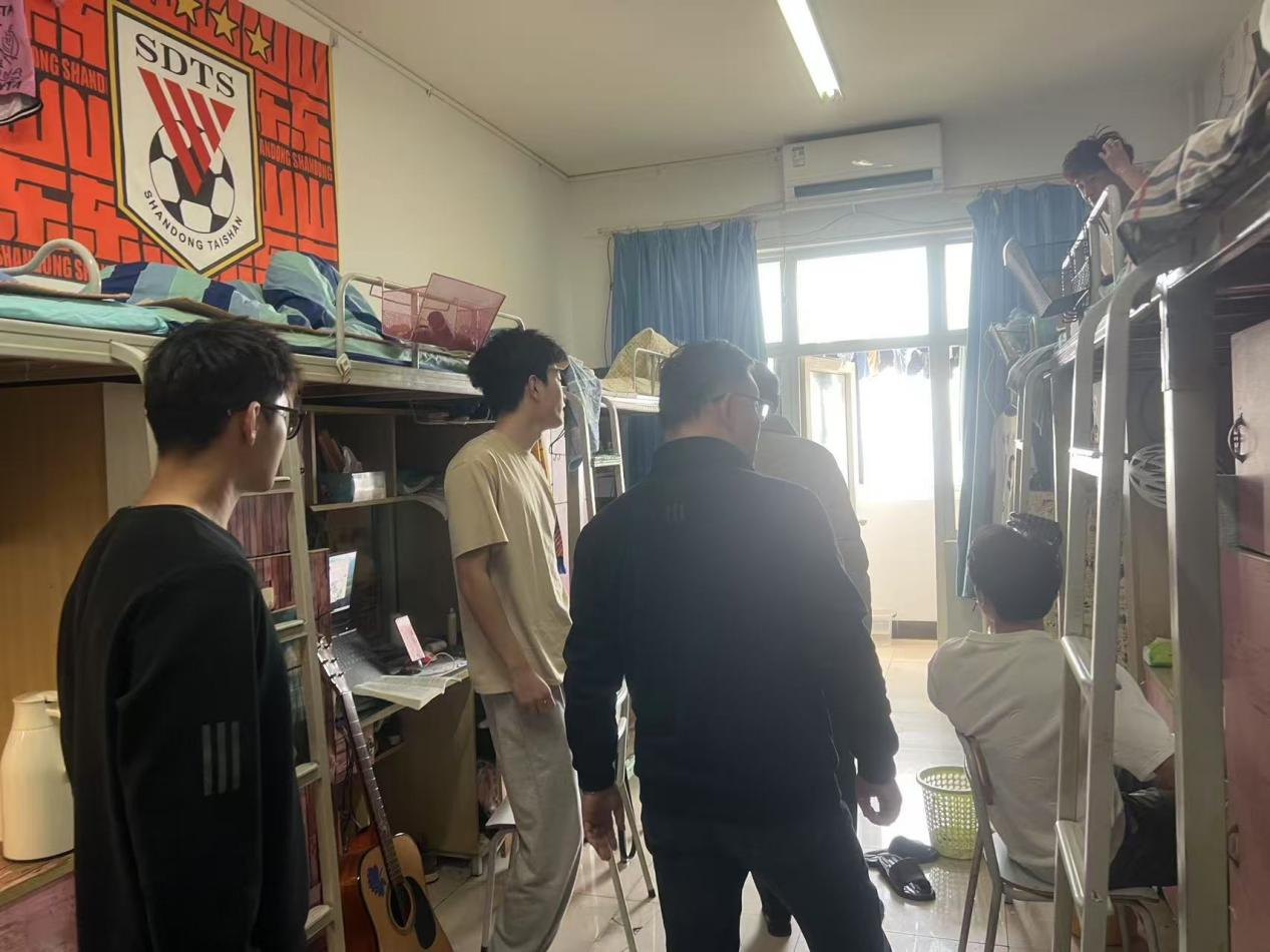 当日下午,2007so太阳集团党委副书记杨录、团委书记王艳丽、辅导员路晓东以及班主任张磊、李国梁、戚道宝等老师分组行动,深入学生宿舍区域。在检查过程中,老师们认真查看了宿舍卫生状况,包括地面清洁、物品摆放、阳台环境等方面。对于卫生状况良好、物品摆放整齐的宿舍,老师们给予了充分肯定,并鼓励同学们继续保持;对于存在卫生问题的宿舍,老师们耐心指出问题所在,督促同学们立即整改,强调营造良好宿舍环境对身心健康的重要性。