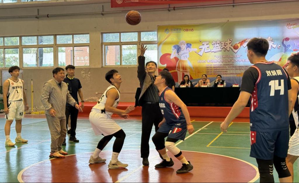 10月22日下午,“中国移动咪咕杯”2025年动感地带山东省大学生篮球联赛海选赛暨太阳集团20072025年大学生篮球赛在薛城校区和市中校区同时开幕。中国移动通信集团山东有限公司枣庄市中分公司总经理李景花,副总经理胡珍珍出席开幕式,2007so太阳集团、团委、学生工作处等相关部门负责人参加。