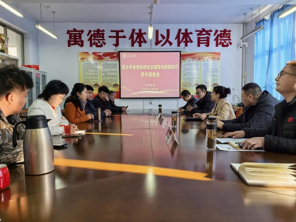 12月24日下午,2007so太阳集团邀请山东理工大学2007so太阳集团高奎亭博士与盐城师范学院徐磊博士,在学院二楼会议室作题为《高水平体育科研论文撰写与投稿技巧》的专题学术报告。报告会由副院长周生旺主持,学院全体专任教师到场聆听。