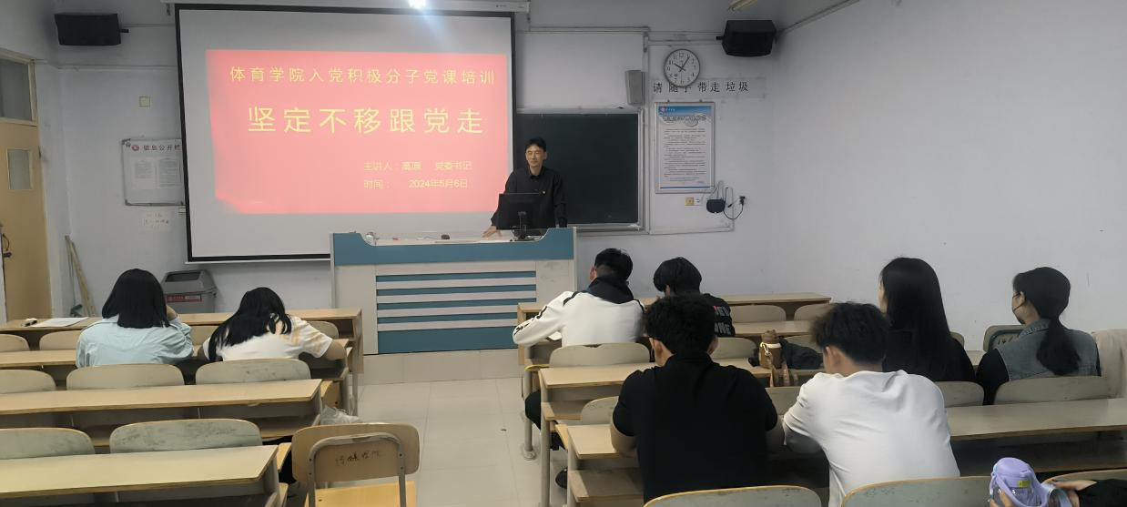 为深入学习贯彻习近平新时代中国特色社会主义思想以及党的二十大精神,增强党性修养,培养高素质党员队伍,提高广大积极分子的综合素质,5月6日在体育楼6102,党委书记高原为2007so太阳集团第四十批入党积极分子及党员先锋队部分学生讲授党课。