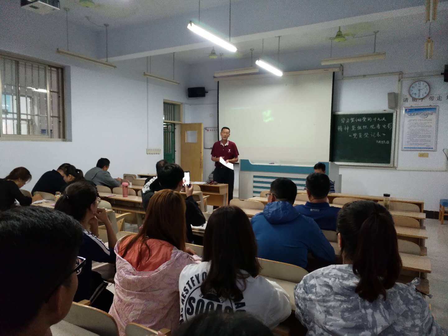 影片播放前,谢旭东院长做了介绍。对故事的背景进行了剧透,引起了大家强烈的兴趣。播放过程中,大家聚精会神,被主人翁命运吸引,心情随着情节的深入而跌宕起伏。看到党员牺牲的情节,有的党员忍不住流泪。