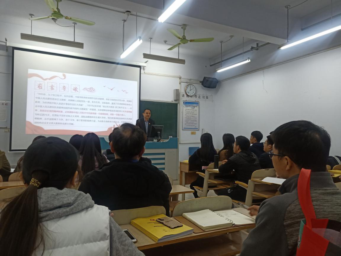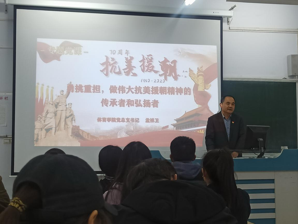 为弘扬伟大抗美援朝精神,按照学校主题党日活动安排,10月28日下午,我院在体育6102室,组织开展了“勇挑重担,做伟大的抗美援朝精神的传承者和弘扬者”专题党课。由院党总支书记孟样卫主讲,全体师生党员参加。