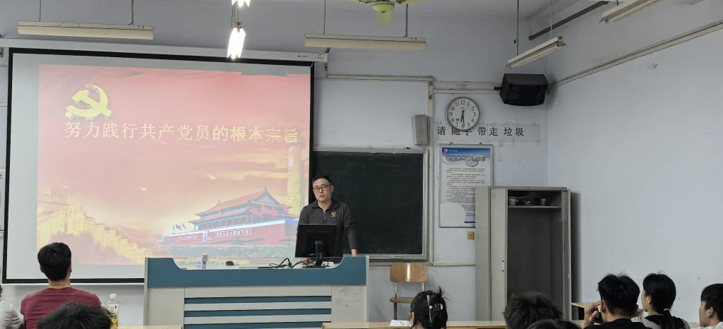 课堂上,杨录以《努力践行共产党员的根本宗旨》为主题展开授课。首先,杨录指出中国共产党的根本宗旨是全心全意为人民服务,这是贯穿党的百年奋斗历程的宗旨。然后,讲述了党的在不同年代是如何体现这一宗旨的,新民主主义革命时期,党领导人民推翻“三座大山”,为的是让广大人民群众摆脱压迫和剥削,获得自由和解放。在社会主义革命和建设时期,党带领人民进行大规模经济建设,致力于改变国家贫穷落后的面貌,改善人民生活。改革开放以来,党始终坚持以经济建设为中心,不断满足人民日益增长的物质文化需要。在讲事迹的同时,讲述了“全心全意为人民服务”的核心要义,“全心全意为人民服务”,核心在于“全心”和“全意”。“全心”意味着毫无保留,共产党员要将全部精力和心血投入到为人民服务中,不掺杂任何私心杂念,不谋求任何个人私利。“全意”则强调态度的坚定性和自觉性,要求共产党员始终保持为人民服务的热情,主动作为,把为人民服务融入到日常工作和生活的方方面面。最后,杨录提出,入党积极分子要践行根本宗旨,第一,要加强理论学习,坚定理想信念。第二,强化责任担当,主动服务群众。第三,密切联系群众,增强服务意识。第四,严格自我要求,加强党性修养。