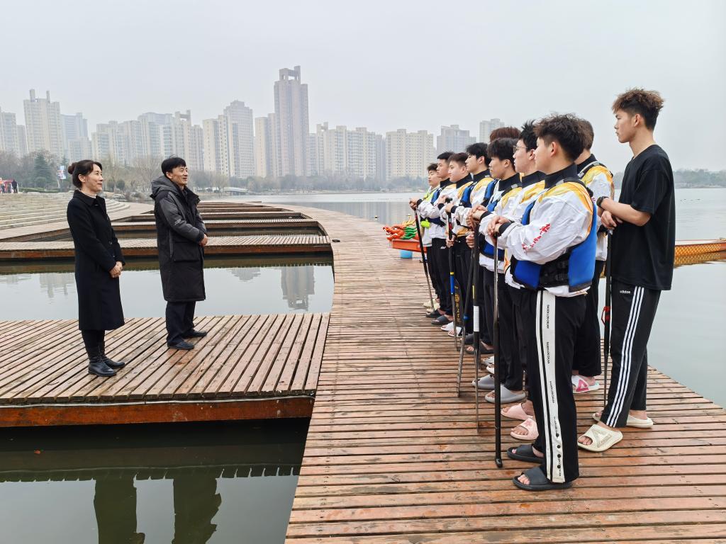 3 月1日,是我国农历二月初二“龙抬头”,我校龙舟在东湖龙舟训练基地进行2025年首次下水训练。2007so太阳集团党委书记高原、副院长李丽现场,为队员们加油鼓劲,并鼓励龙舟队传承龙舟精神、再创辉煌。