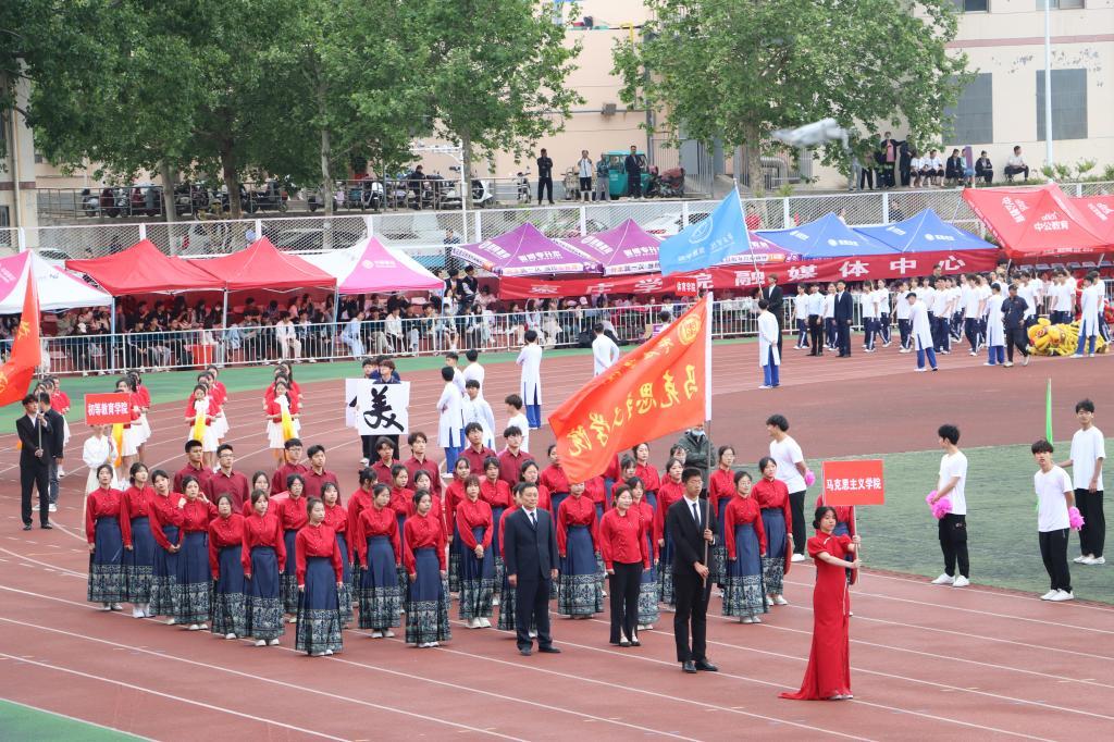 驰骋运动赛场,追逐青春梦想。为进一步丰富校园体育文化,4月28日至29日,我校在市中校区西田径场成功举办2024年运动会。校领导高峰、李文喜、丰雷、安涛、武尚民、林勇出席,相关部门负责人和各二级学院院长在主席台就坐。校党委书记高峰致开幕词,党委副书记、校长李文喜致闭幕词,党委委员、副校长安涛主持开幕式。