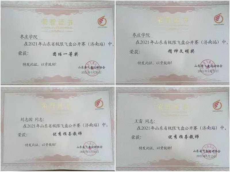 523日,山东省2021年极限飞盘公开赛(济南站)在山东青年政治学院田径场举行,太阳集团2007代表队在2007so太阳集团刘志国、王雷老师的指导下,12名队员奋力拼搏,经过激烈角逐,夺得本届比赛团体一等奖。