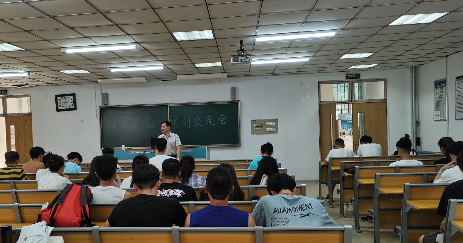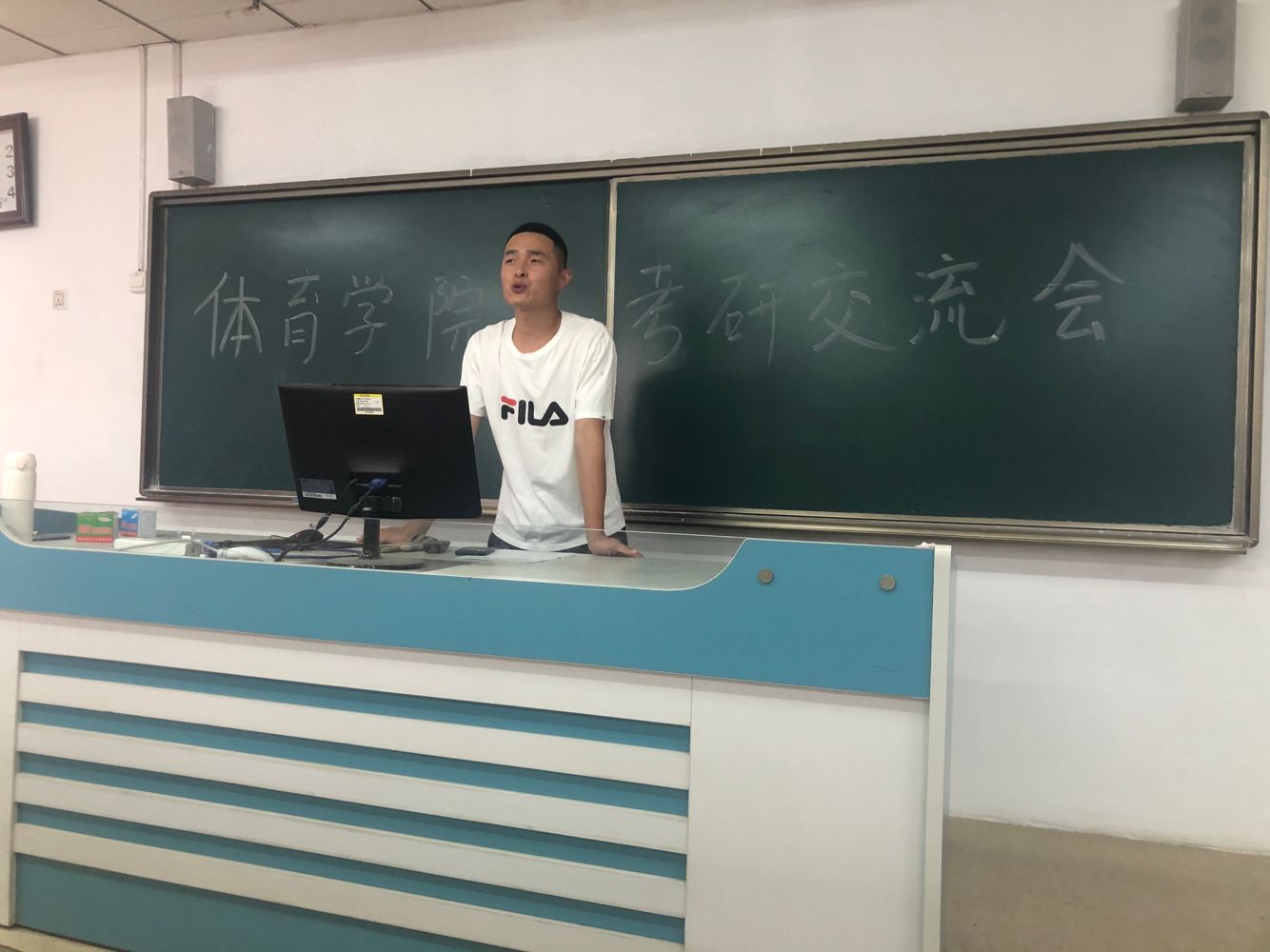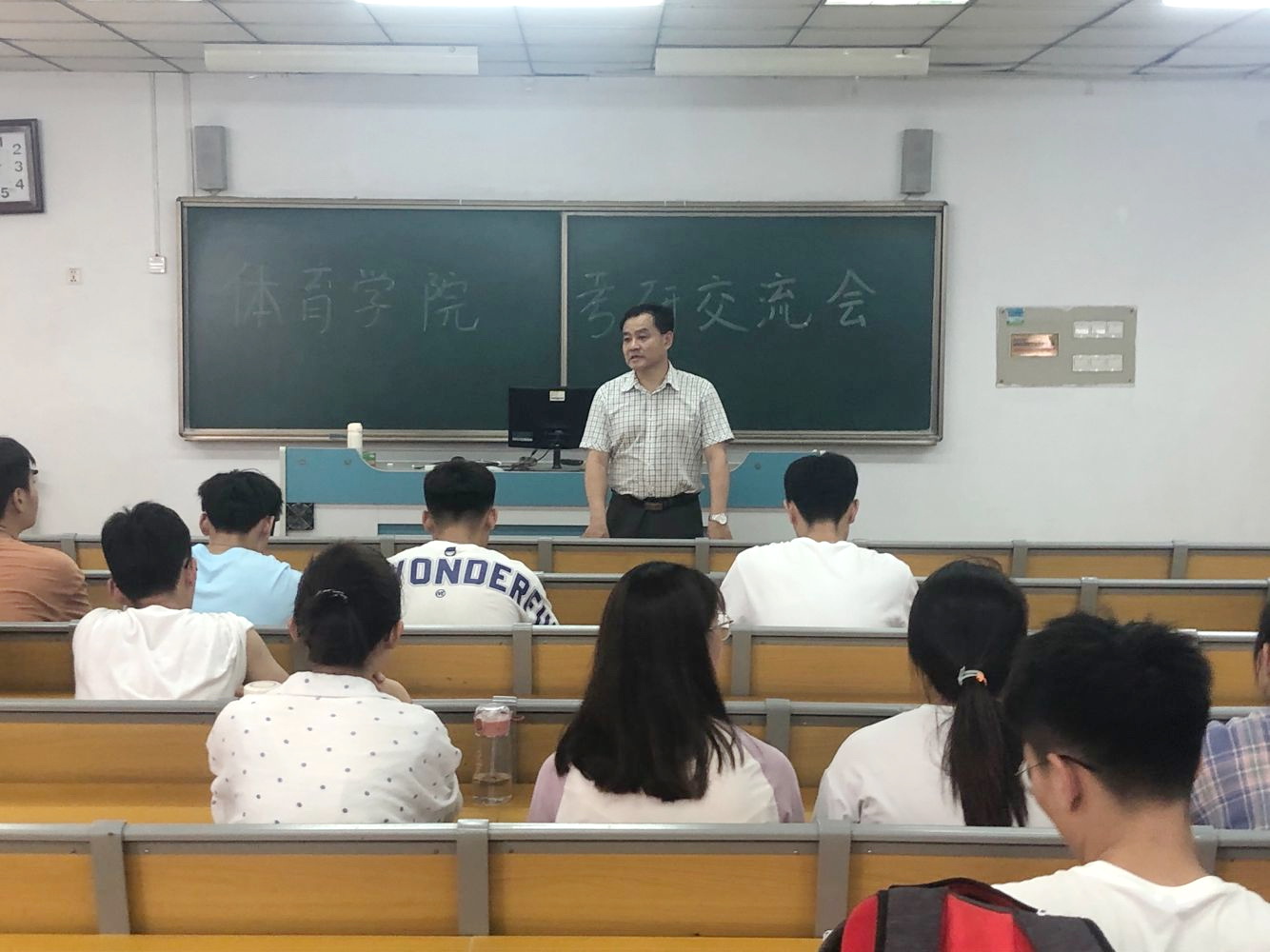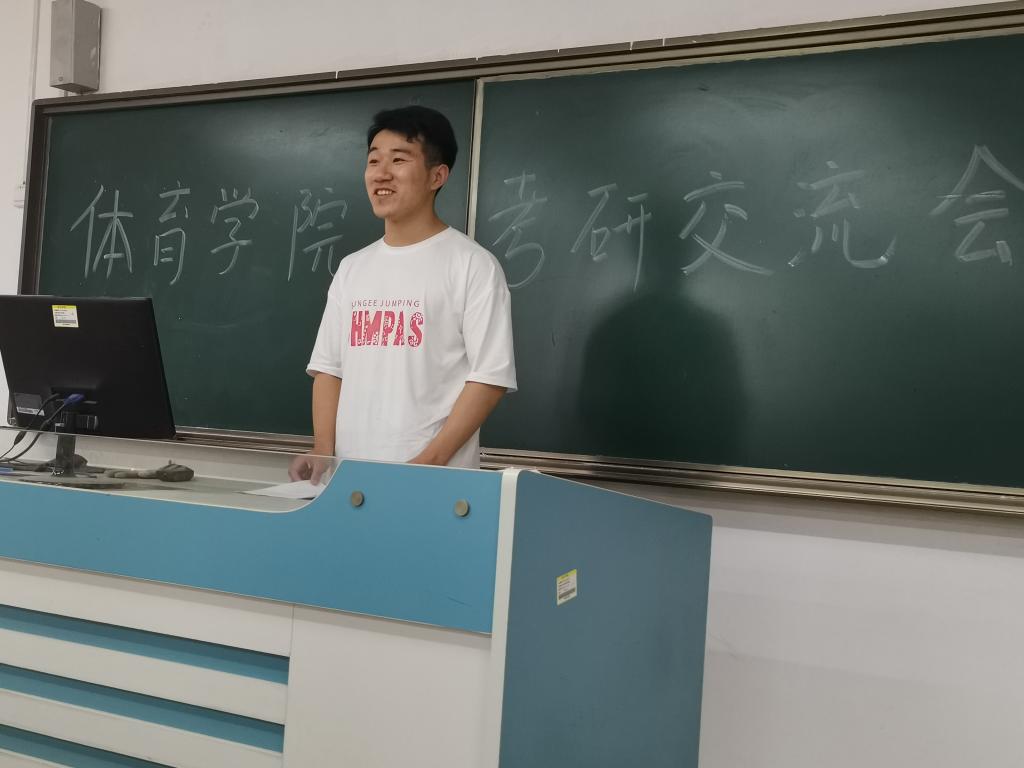 交流会开始,第一位上台交流的是体育教育专业的苏通。他主要围绕为什么考研,如何选择学校及备考阶段的时间安排、学习方法等问题,结合自己的经历向同学们讲述应注意的事项。